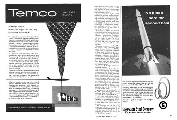 Evendale, Ohio—General Electric J79 turbojet, which is powering most of the Mach 2 aircraft in the U. S., has set a new standard for lightness, primarily through the maximum possible use of built-up sheet metal parts to carry the main engine loads rather than the more traditional castings and forgings.