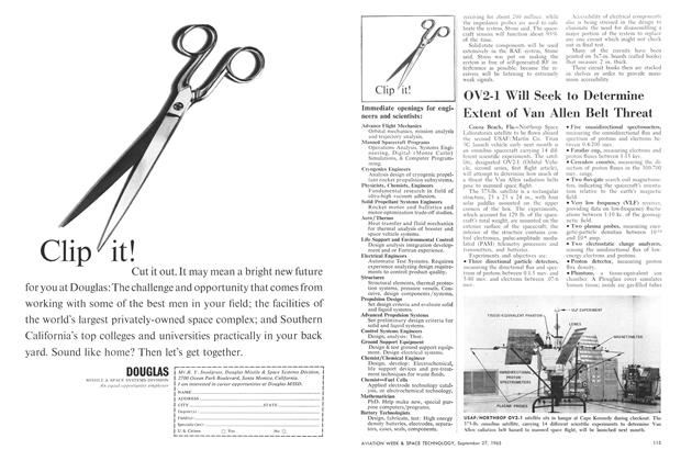 Greenbelt, Md.—Design work on the radio astronomy explorer (RAE) satellite has been completed at the Goddard Space Flight Center here. The 380-lb. payload, which will carry 750-1,000-ft. antennas to measure very low frequency electromagnetic radiation from space, is scheduled for launch early in 1967.