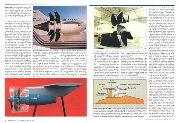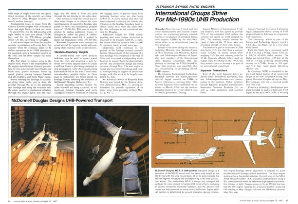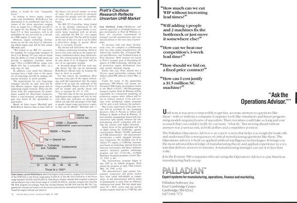 Derby, England—Rolls-Royce has begun a technology demonstrator program aimed at producing an economically viable propfan propulsion system within 10 years, but the company sees propfans as restricted in the thrust range in which they will compete with shrouded fans and unlikely to be ready for airline service, even within a limited thrust range, until at least the mid-1990s.